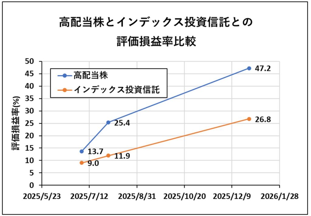 インデックス投資と高配当個別株投資の成績比較